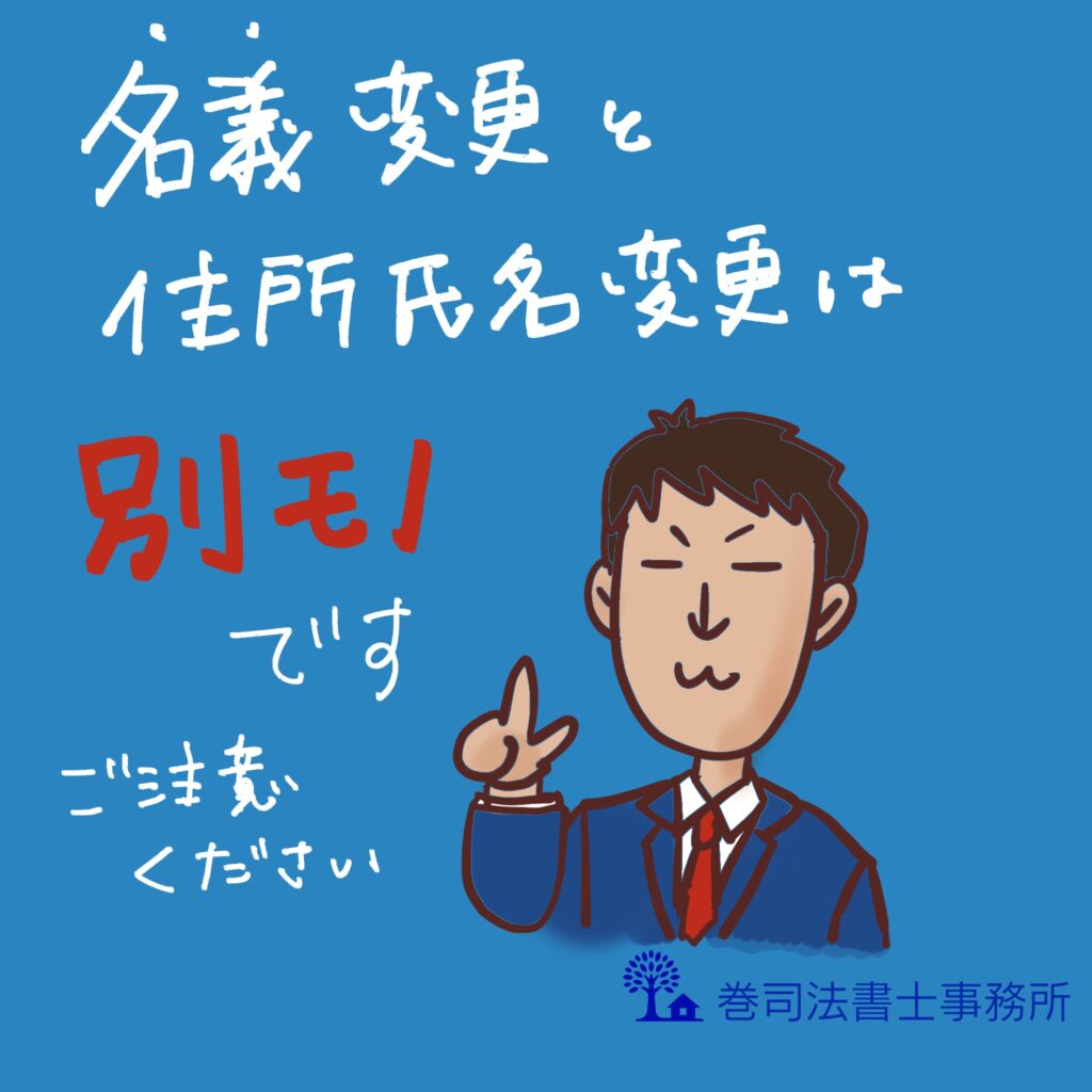 ここで注意していただきたいのが、住所・氏名の変更登記と、いわゆる「名義変更(所有者の変更登記)」はまったく別の手続きであるという点です。
